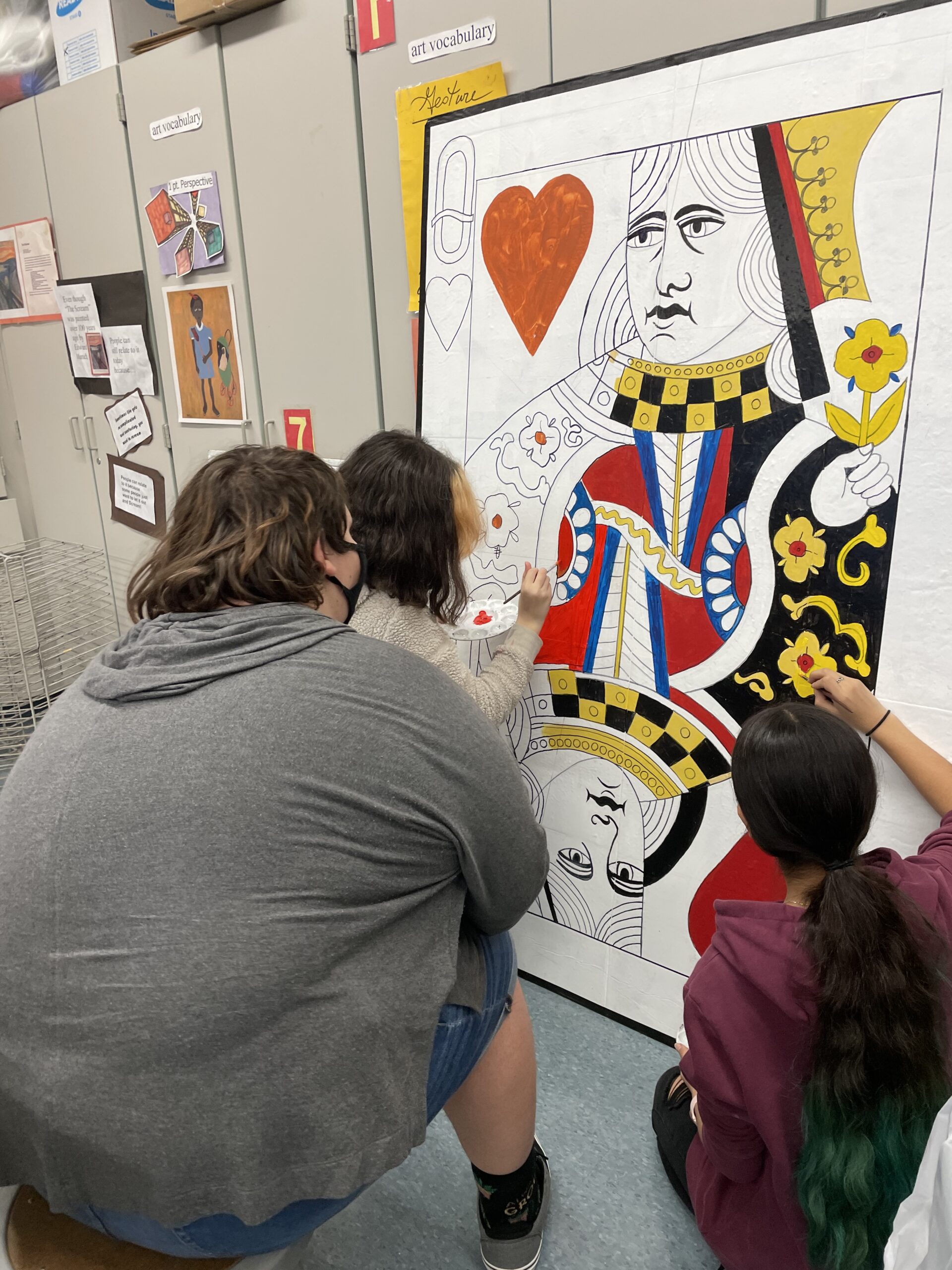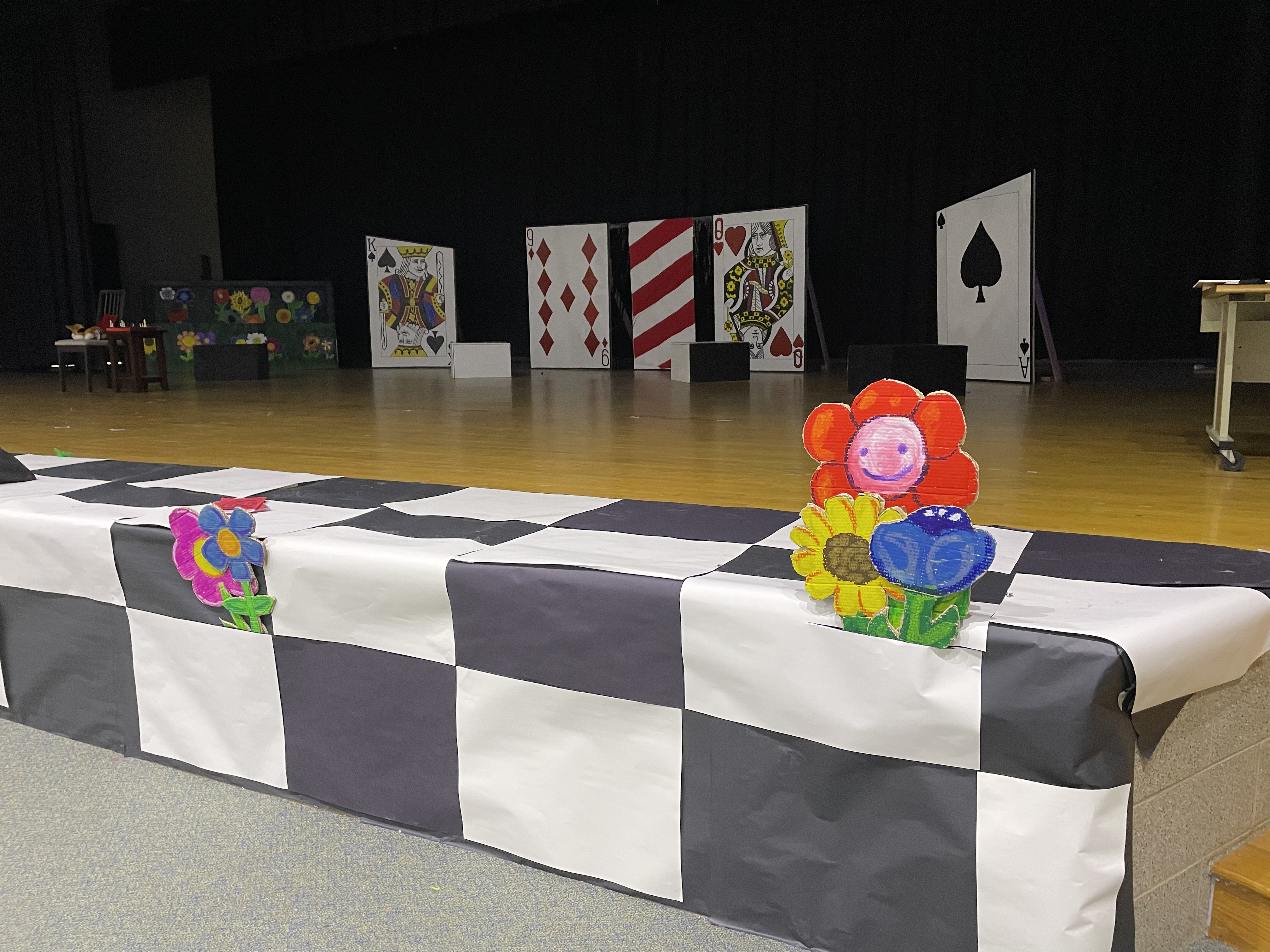 During my Early Field Placement, Winter Break, and first Student teaching placement I worked with the 7th and 8th grade set design club to create decorations and costumes for the schools production of Wonderland. I co-taught, assisted students and teachers, designed projects, and oversaw stage decoration.