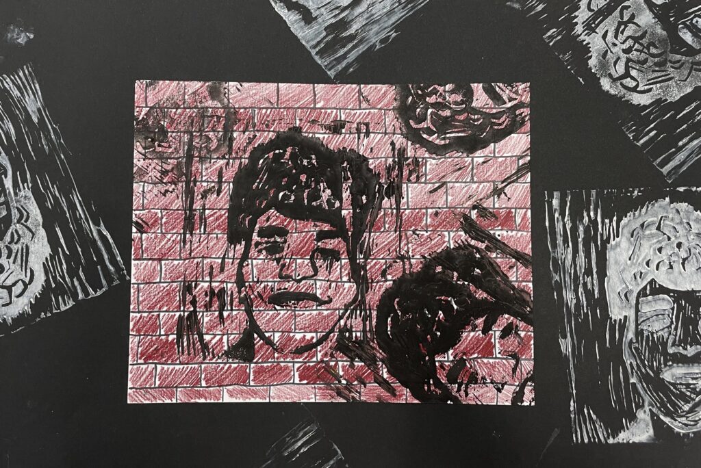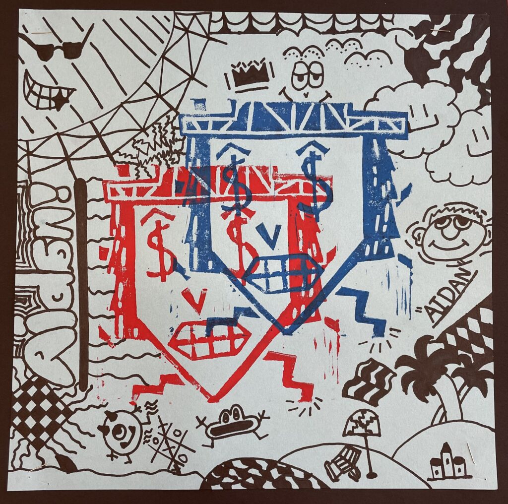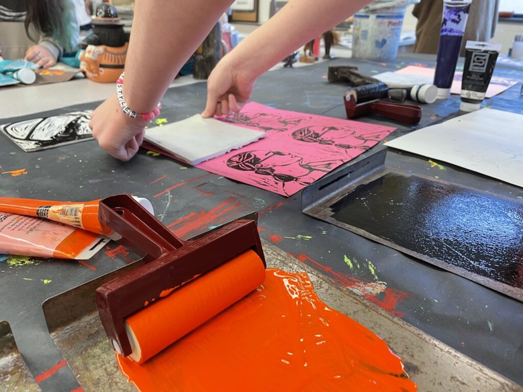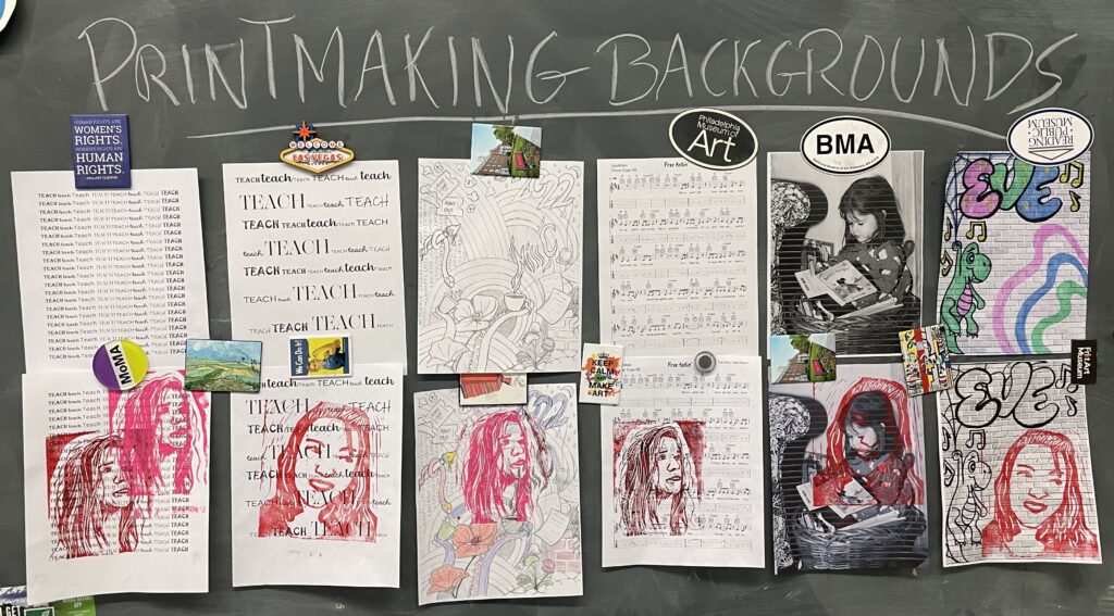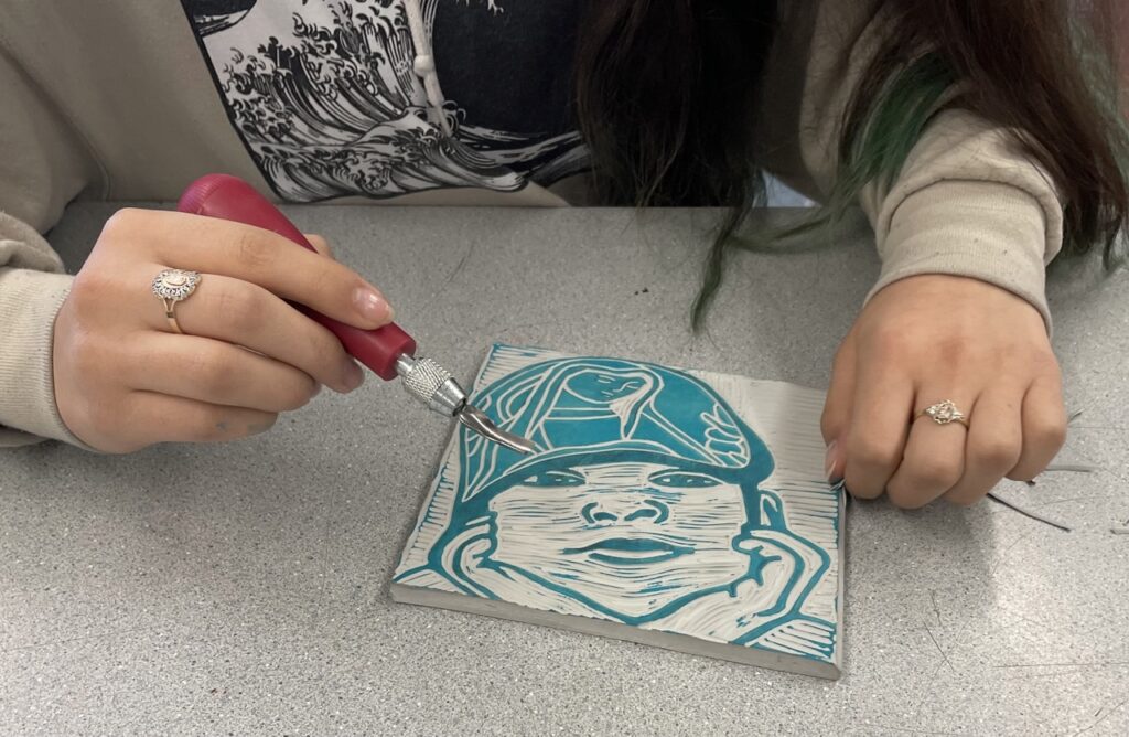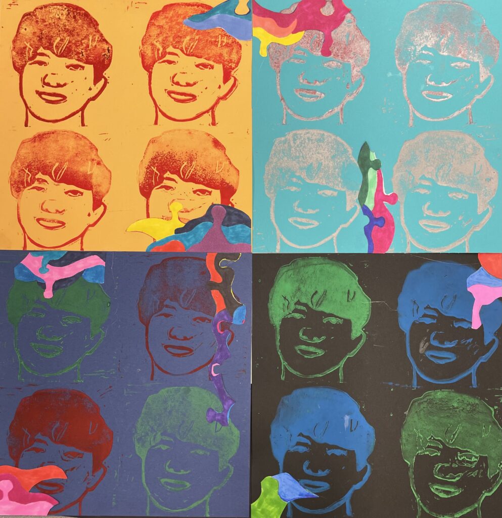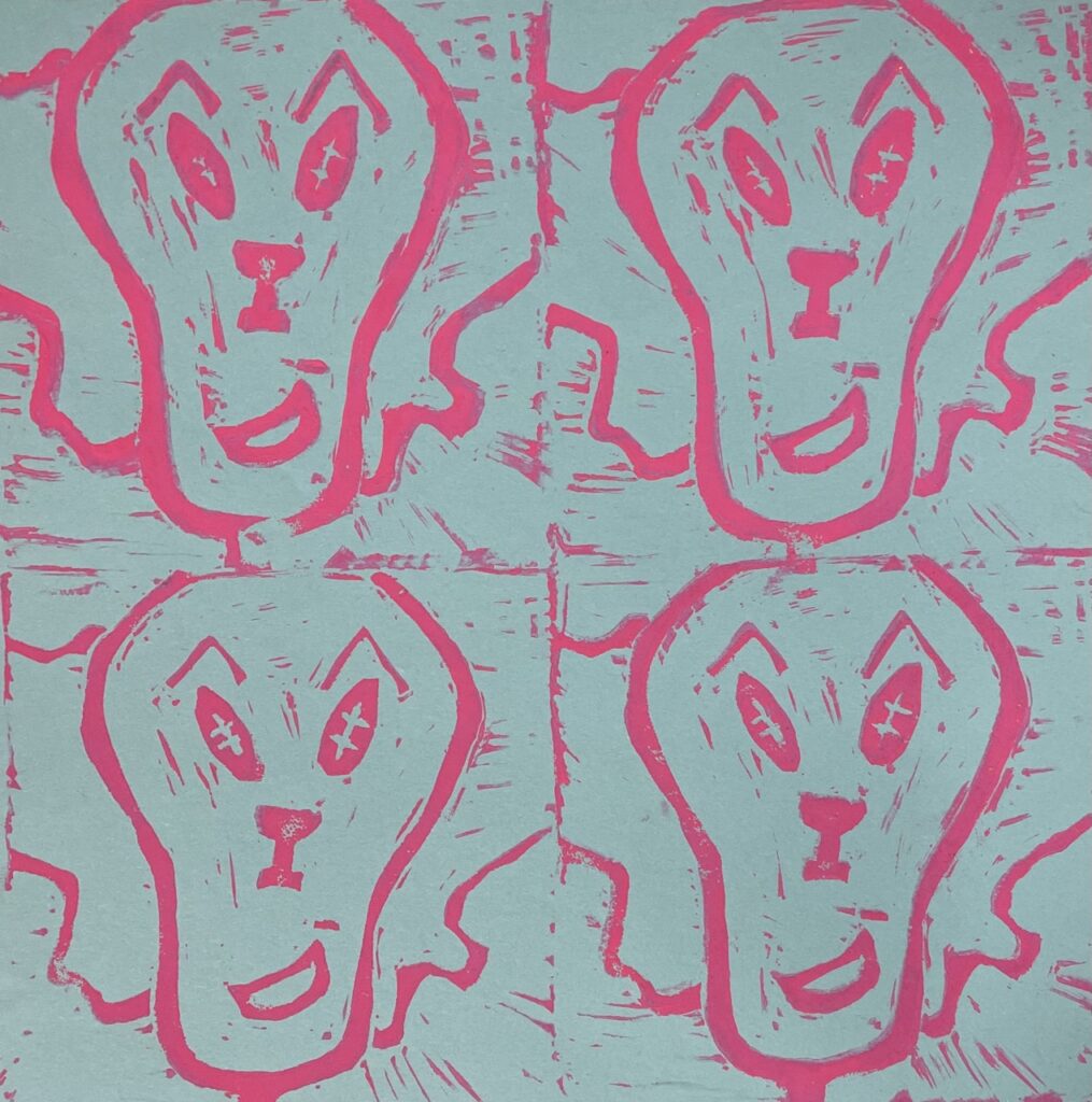 In this lesson students will look at, and respond to, artists who explore and express identity through portraiture in different ways. Taking inspiration from those artists, and spending time on self reflection, students will create a linocut portrait and a variety of different backgrounds to print that portrait on. Students will have the freedom to create their portrait using a photograph, or by drawing an abstract, stylized, or distorted portrait. In creating the backgrounds students will have the freedom to use any materials that are available to them, and that they can print on. However they will also be given a set of options to guide them, and will create several specific options throughout the lesson that can be used for their final prints or to test on. The focus on identity will be open for students to explore whatever aspects or interests are most important to them at the time of art making, but they will be encouraged to think about what brings them joy. After final printing students will choose the final print or prints that they feel best represent themselves and create a self reflection/artists statement.