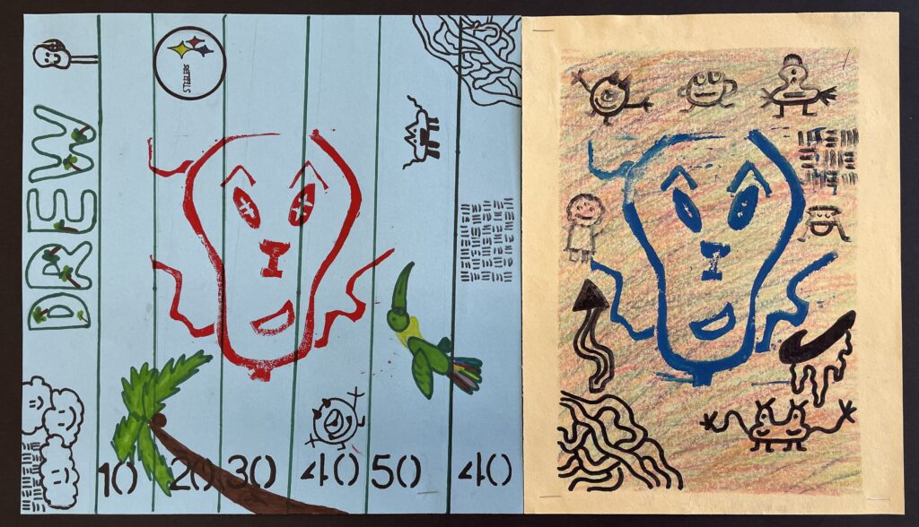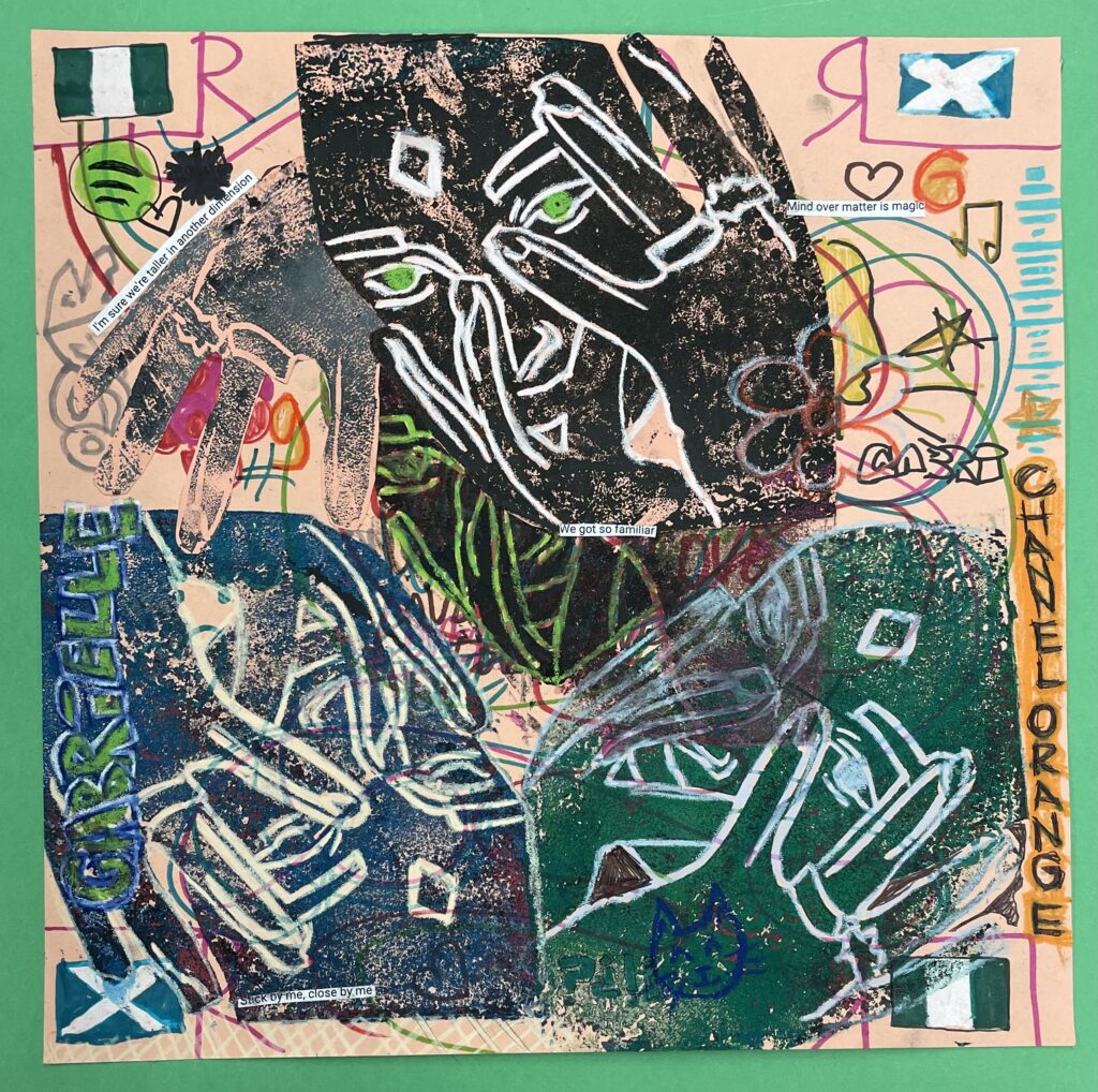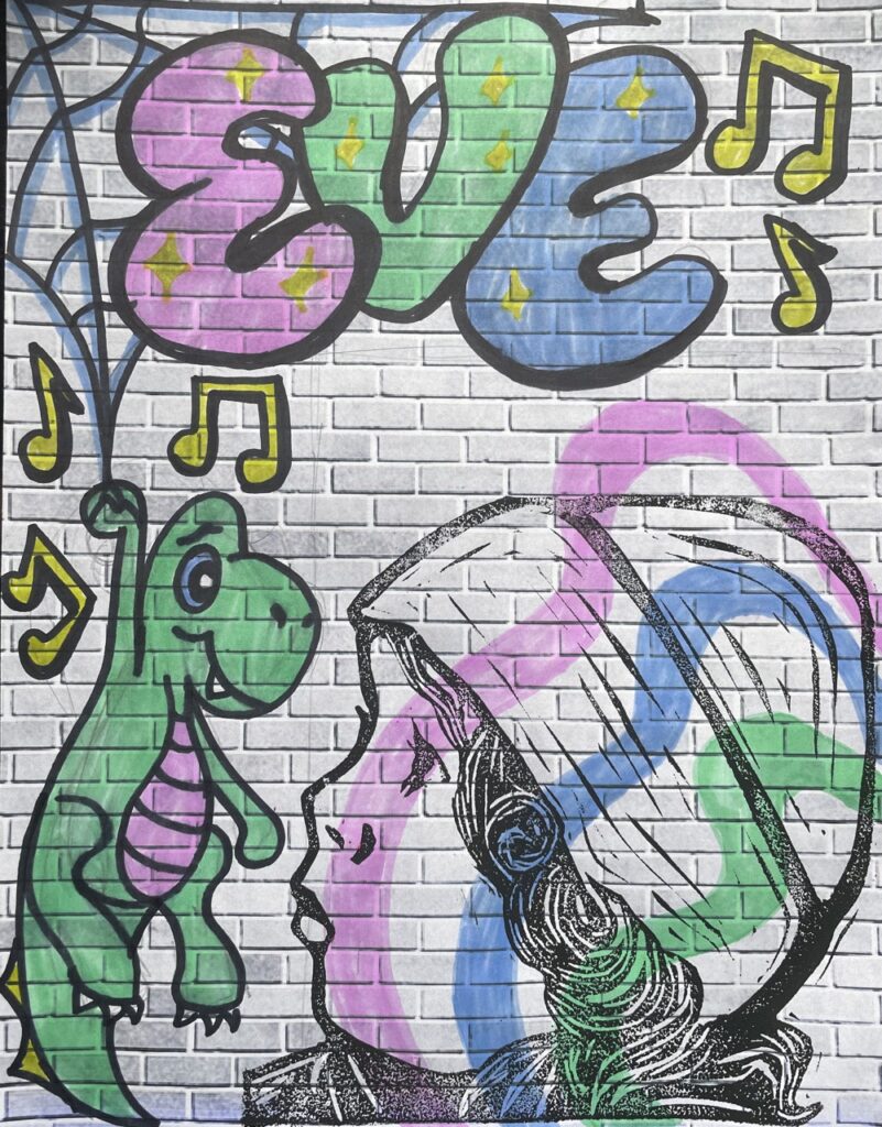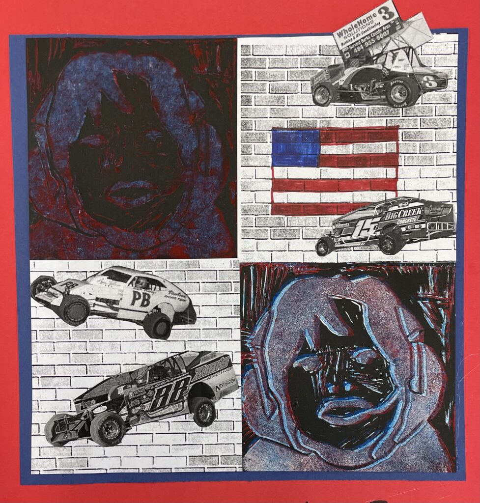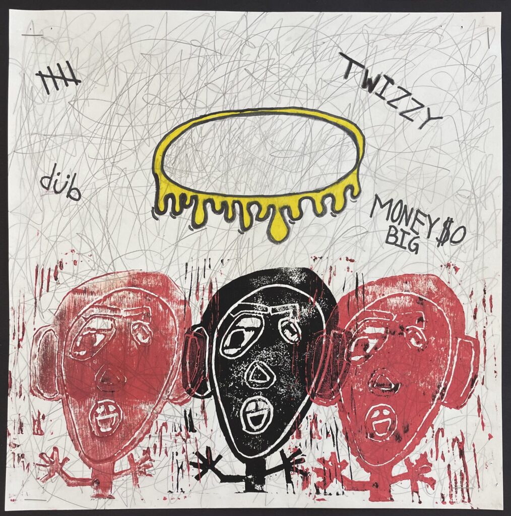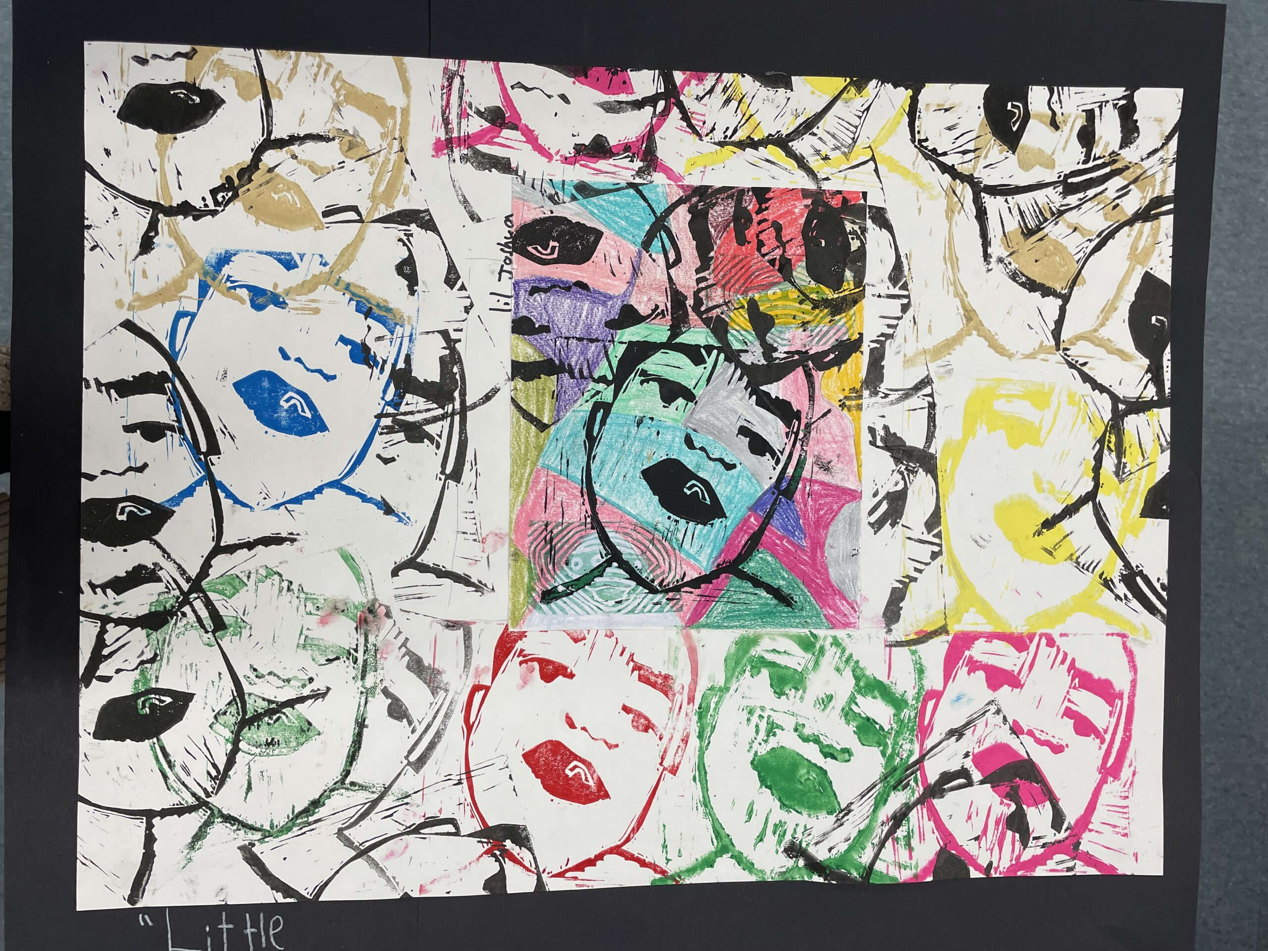 In this lesson students will look at, and respond to, artists who explore and express identity through portraiture in different ways. Taking inspiration from those artists, and spending time on self reflection, students will create a linocut portrait and a variety of different backgrounds to print that portrait on. Students will have the freedom to create their portrait using a photograph, or by drawing an abstract, stylized, or distorted portrait. In creating the backgrounds students will have the freedom to use any materials that are available to them, and that they can print on. However they will also be given a set of options to guide them, and will create several specific options throughout the lesson that can be used for their final prints or to test on. The focus on identity will be open for students to explore whatever aspects or interests are most important to them at the time of art making, but they will be encouraged to think about what brings them joy. After final printing students will choose the final print or prints that they feel best represent themselves and create a self reflection/artists statement.